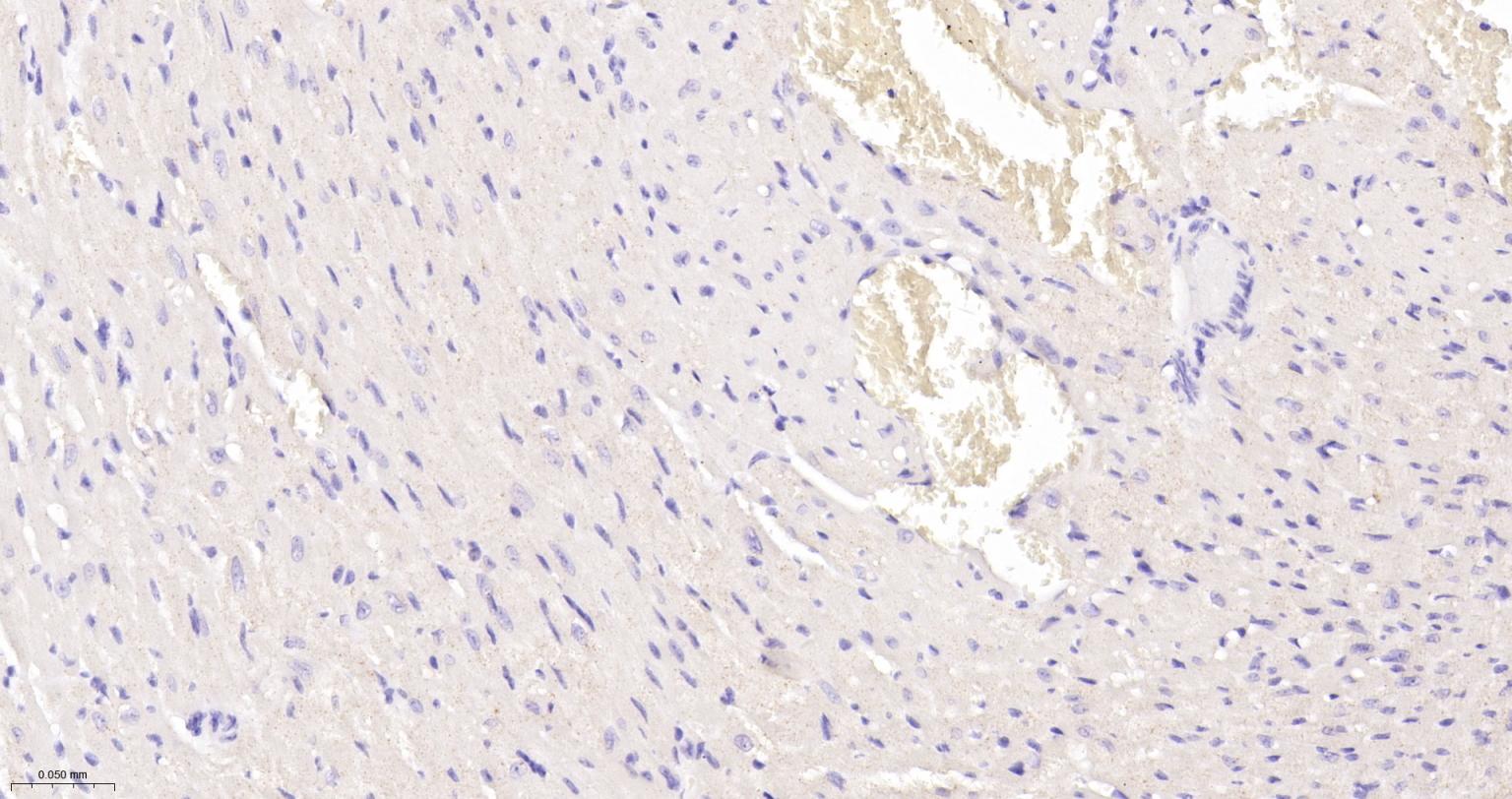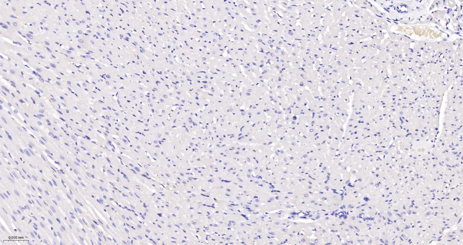 (Negative control) Paraformaldehyde-fixed, paraffin embedded Rat Heart; Antigen retrieval by boiling in sodium citrate buffer (pH6.0) for 15 min; Antibody incubation with Ki67 Monoclonal Antibody, Unconjugated(bsm-52455R) at 1:200 overnight at 4°C, followed by conjugation to the SP Kit(Rabbit, SP-0023) and DAB (C-0010) staining.