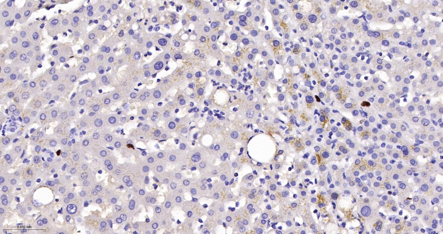 Paraformaldehyde-fixed, paraffin embedded Mouse Liver; Antigen retrieval by boiling in sodium citrate buffer (pH6.0) for 15 min; The section was incubated with Ki-67 Monoclonal Antibody, Unconjugated (bsm-52455R) at 1:200 overnight at 4°C, followed by conjugation to the bs-0295G-HRP and DAB (C-0010) staining.