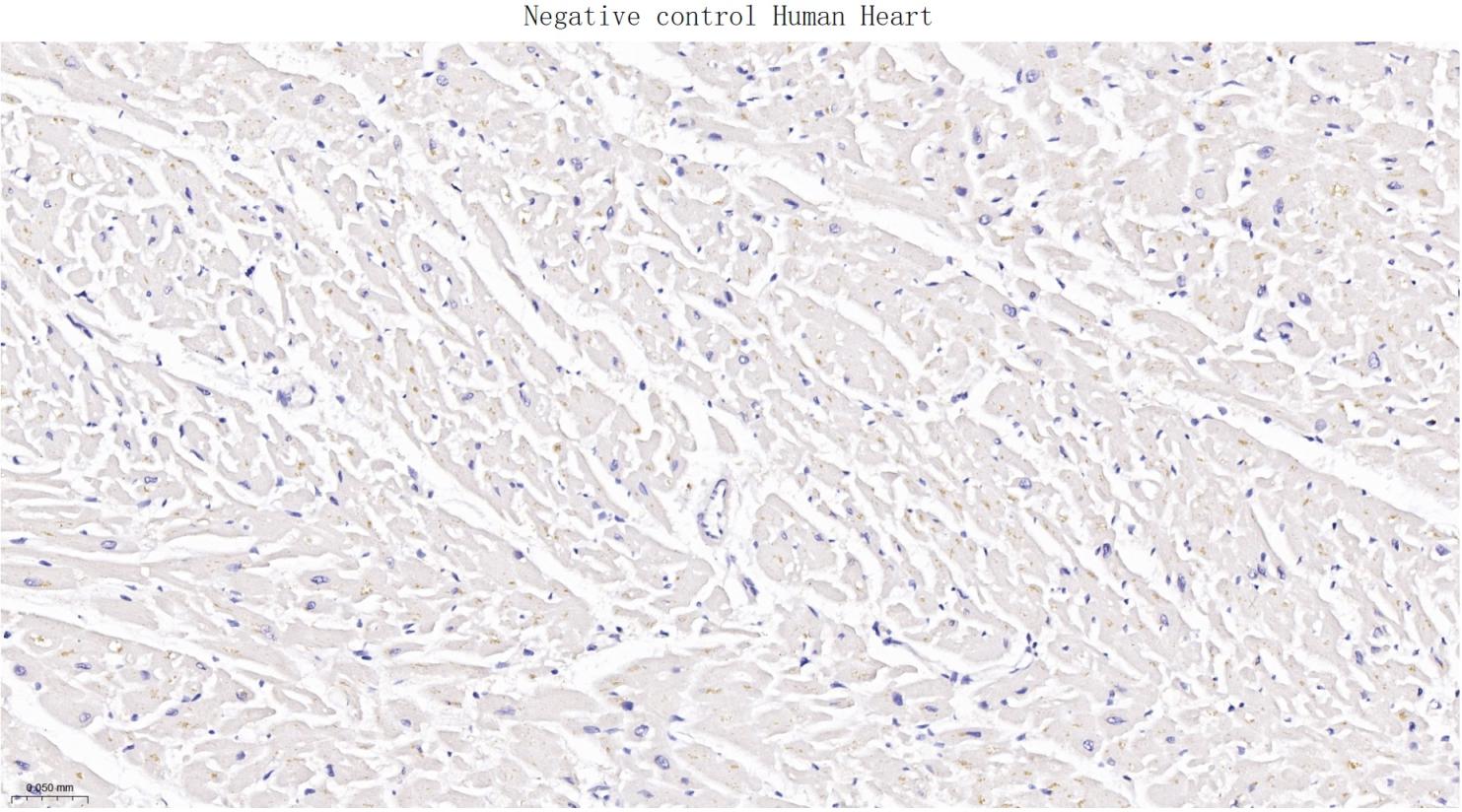 (Negative control)Paraformaldehyde-fixed, paraffin embedded Human Heart; Antigen retrieval by boiling in sodium citrate buffer (pH6.0) for 15 min; The section was incubated with Ki-67 Monoclonal Antibody, Unconjugated (bsm-52455R) at 1:200 overnight at 4°C, followed by conjugation to the bs-0295G-HRP and DAB (C-0010) staining.