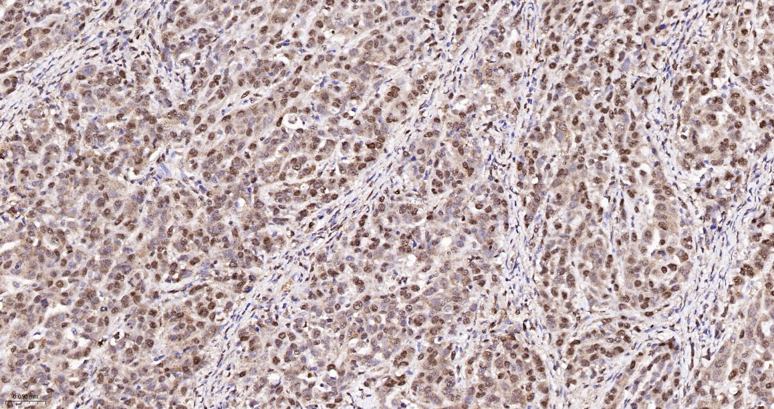 Paraformaldehyde-fixed, paraffin embedded Human Liver; Antigen retrieval by boiling in sodium citrate buffer (pH6.0) for 15 min; The section was incubated with APEX1 Monoclonal Antibody, Unconjugated (bsm-60707R) at 1:200 overnight at 4°C, followed by conjugation to the bs-0295G-HRP and DAB (C-0010) staining.