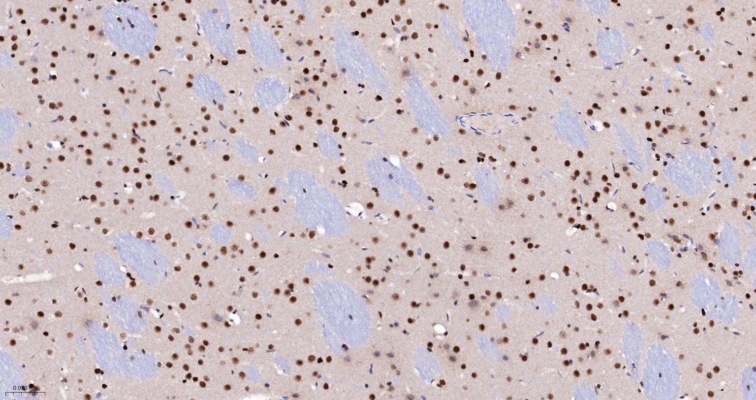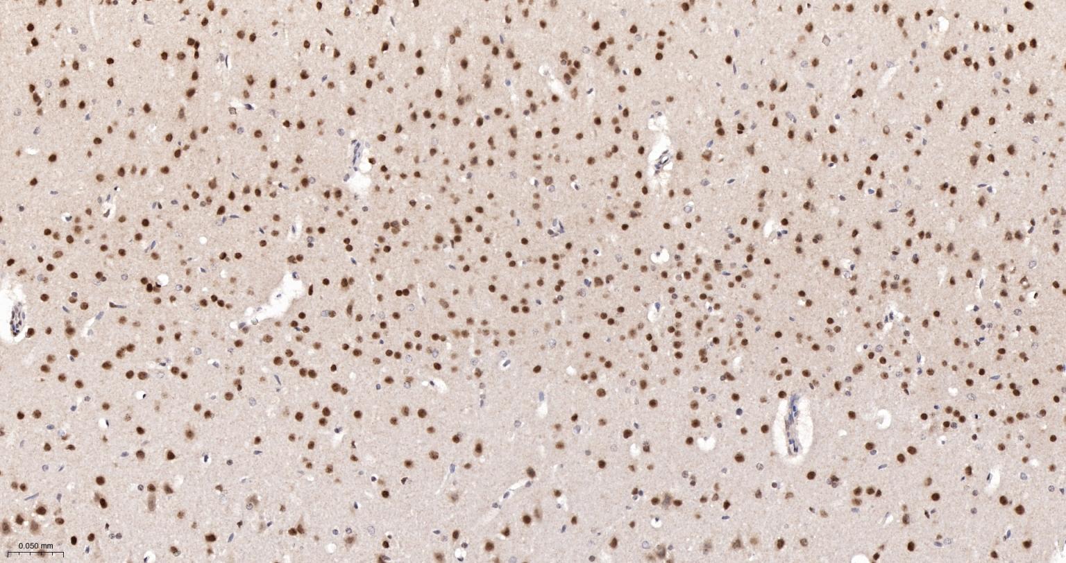Paraformaldehyde-fixed, paraffin embedded Rat Cerebrum; Antigen retrieval by boiling in sodium citrate buffer (pH6.0) for 15 min; The section was incubated with APEX1 Monoclonal Antibody, Unconjugated (bsm-60707R) at 1:200 overnight at 4°C, followed by conjugation to the bs-0295G-HRP and DAB (C-0010) staining.
