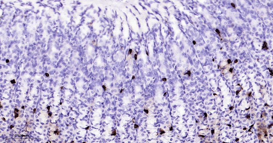 Paraformaldehyde-fixed, paraffin embedded Mouse Stomach; Antigen retrieval by boiling in sodium citrate buffer (pH6.0) for 15 min; Antibody incubation with CHGA Monoclonal Antibody, Unconjugated(bsm-60747R) at 1:200 overnight at 4°C, followed by conjugation to the bs-0295G-HRP and DAB (C-0010) staining.