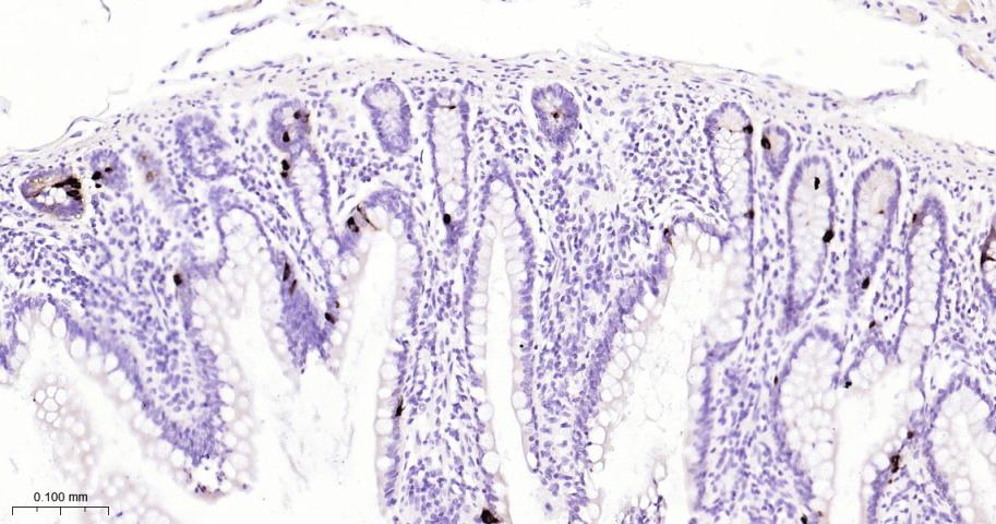 Paraformaldehyde-fixed, paraffin embedded Mouse Colon; Antigen retrieval by boiling in sodium citrate buffer (pH6.0) for 15 min; Antibody incubation with CHGA Monoclonal Antibody, Unconjugated(bsm-60747R) at 1:200 overnight at 4°C, followed by conjugation to the bs-0295G-HRP and DAB (C-0010) staining.