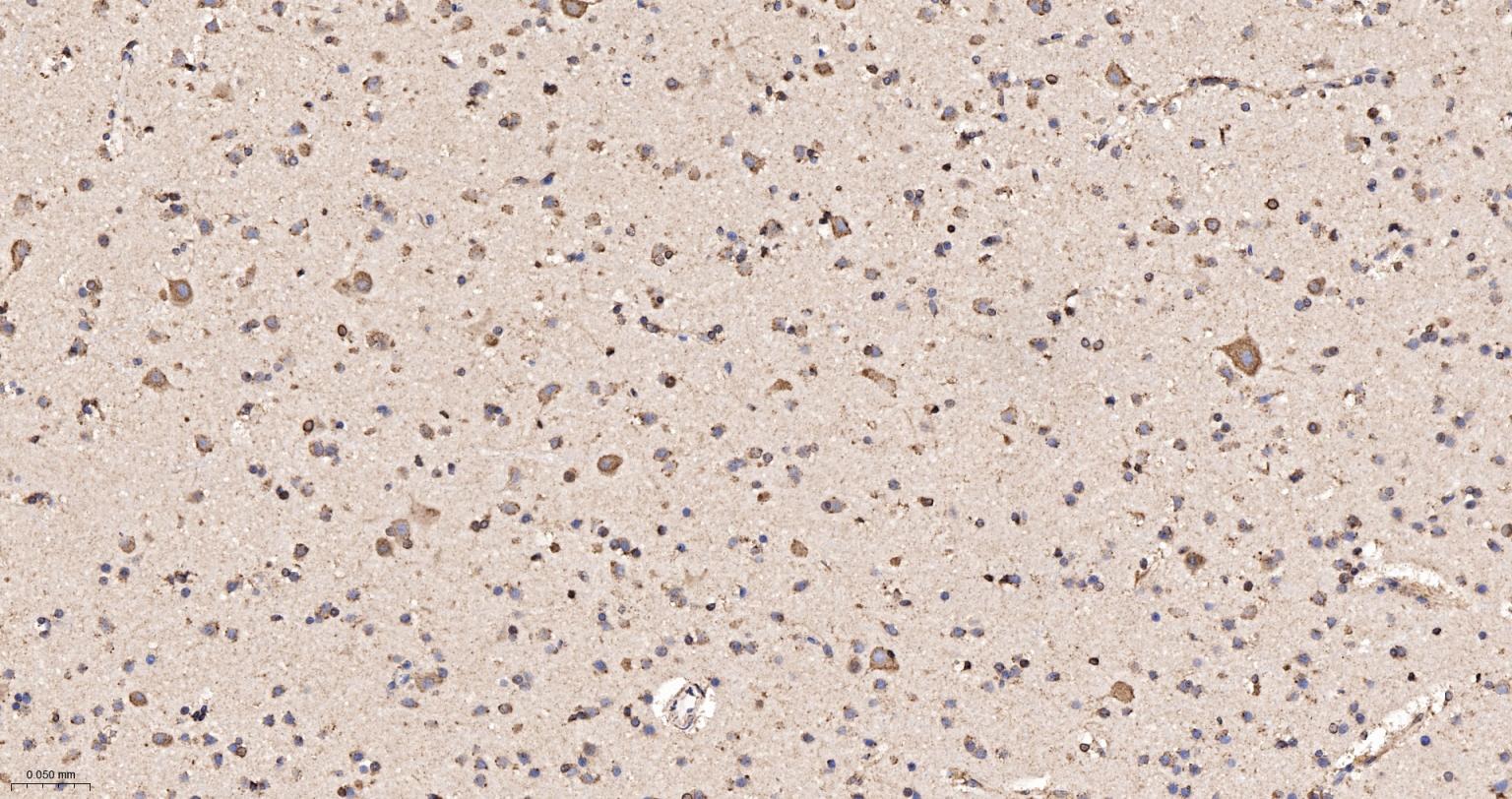 Paraformaldehyde-fixed, paraffin embedded Human Cerebrum; Antigen retrieval by boiling in sodium citrate buffer (pH6.0) for 15 min; The section was incubated with OPA1 Monoclonal Antibody, Unconjugated (bsm-54144R) at 1:200 overnight at 4°C, followed by conjugation to the bs-0295G-HRP and DAB (C-0010) staining.