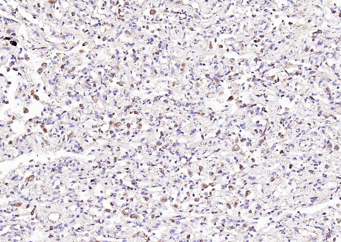 Paraformaldehyde-fixed, paraffin embedded Human Spleen; Antigen retrieval by boiling in sodium citrate buffer (pH6.0) for 15 min; Antibody incubation with LAMP1 Polyclonal Antibody, Unconjugated (bs-41335R) at 1:200 overnight at 4°C, followed by conjugation to the SP Kit (Rabbit, SP-0023) and DAB (C-0010) staining.
