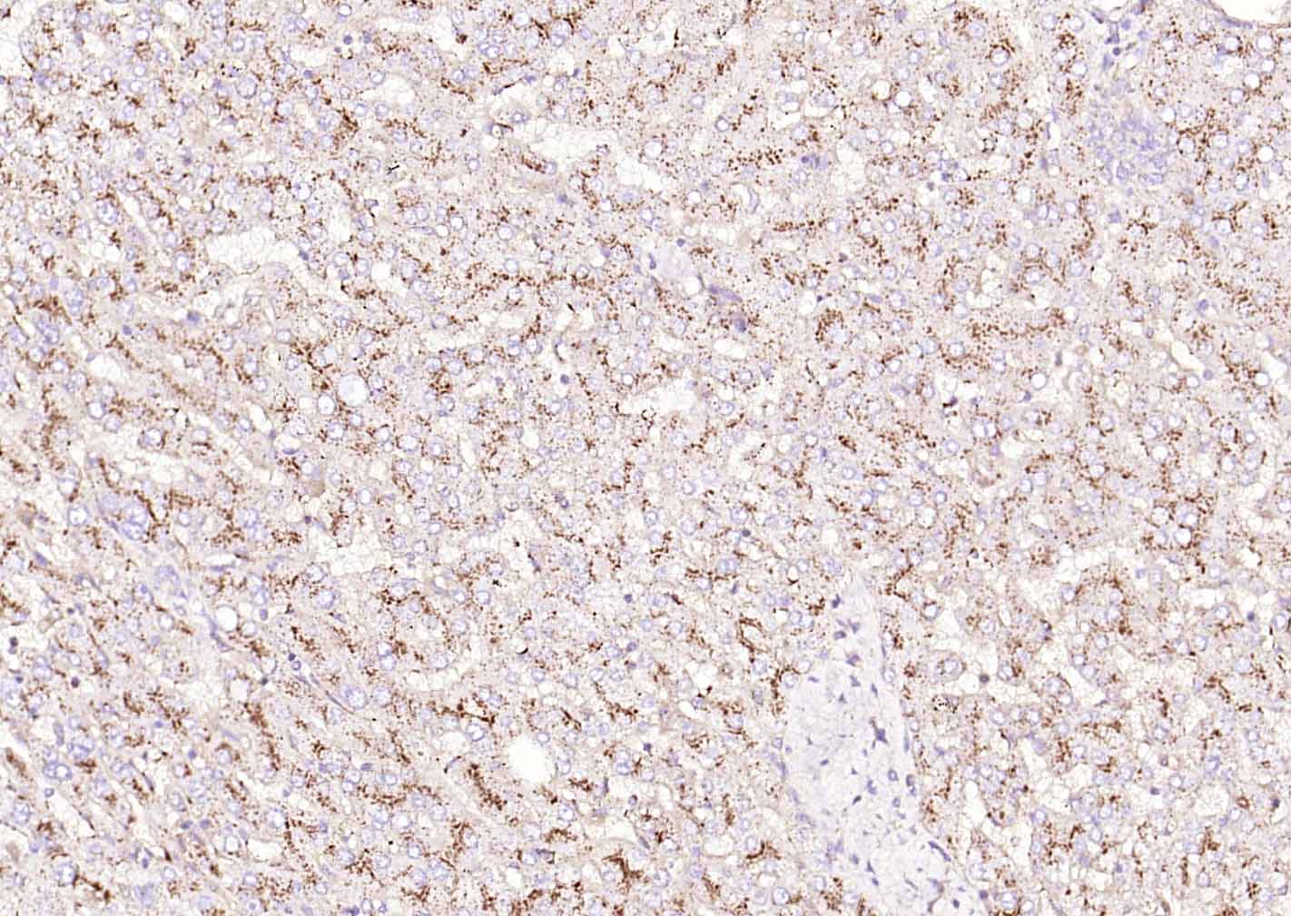Paraformaldehyde-fixed, paraffin embedded (human liver); Antigen retrieval by boiling in sodium citrate buffer (pH6.0) for 15min; Block endogenous peroxidase by 3% hydrogen peroxide for 20 minutes; Blocking buffer (normal goat serum) at 37°C for 30min; Incubation with (LAMP1) Polyclonal Antibody, Unconjugated (bs-41335R) at 1:100 overnight at 4°C, followed by operating according to SP Kit(Rabbit) (sp-0023) instructionsand DAB staining.