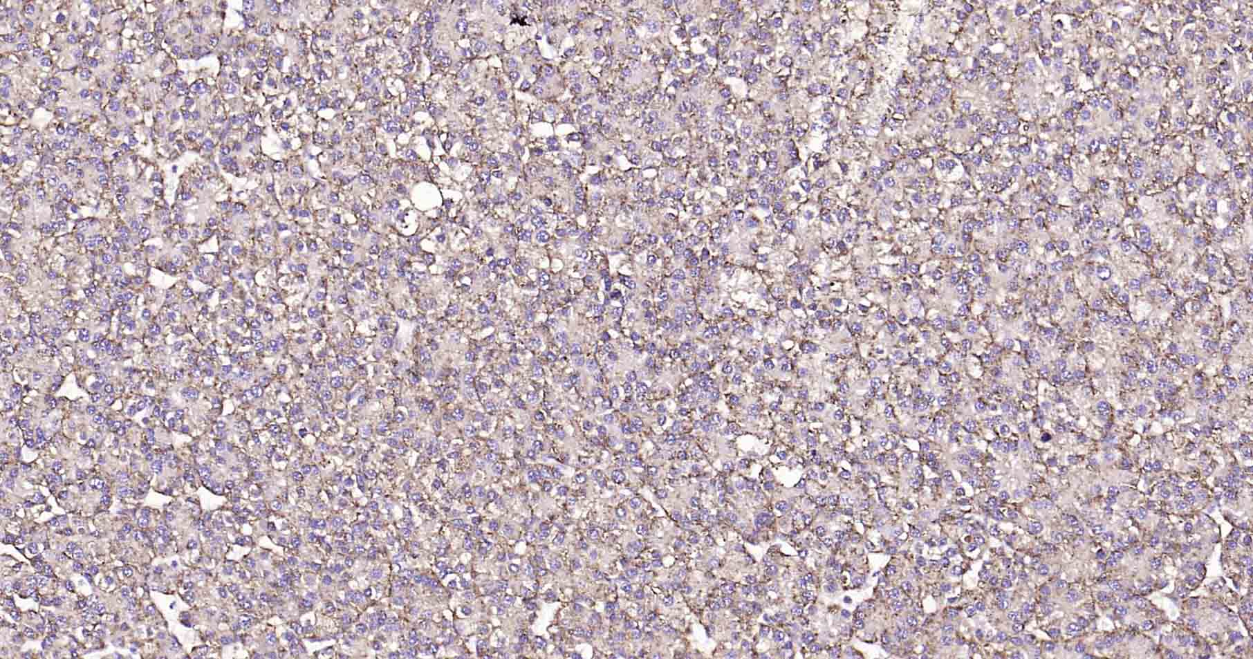 Paraformaldehyde-fixed, paraffin embedded Human Liver Cancer; Antigen retrieval by boiling in sodium citrate buffer (pH6.0) for 15 min; Antibody incubation with LAMP1 Polyclonal Antibody, Unconjugated (bs-41335R) at 1:200 overnight at 4°C, followed by conjugation to the SP Kit (Rabbit, SP-0023) and DAB (C-0010) staining.