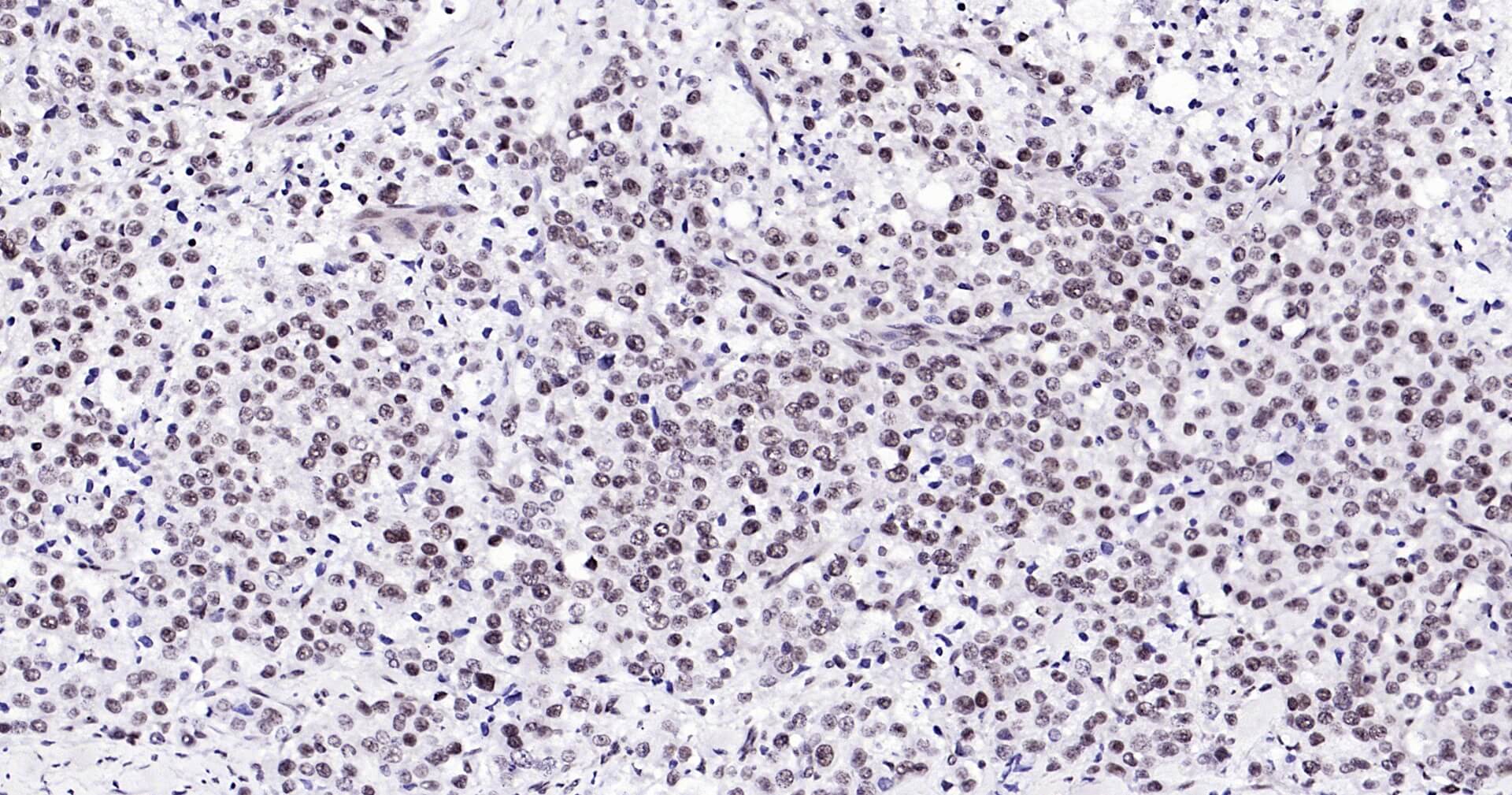 Immunohistochemical analysis of paraffin embedded human prostate tumor tissue slide using IHC0116H (Human HP1 alpha IHC Kit).