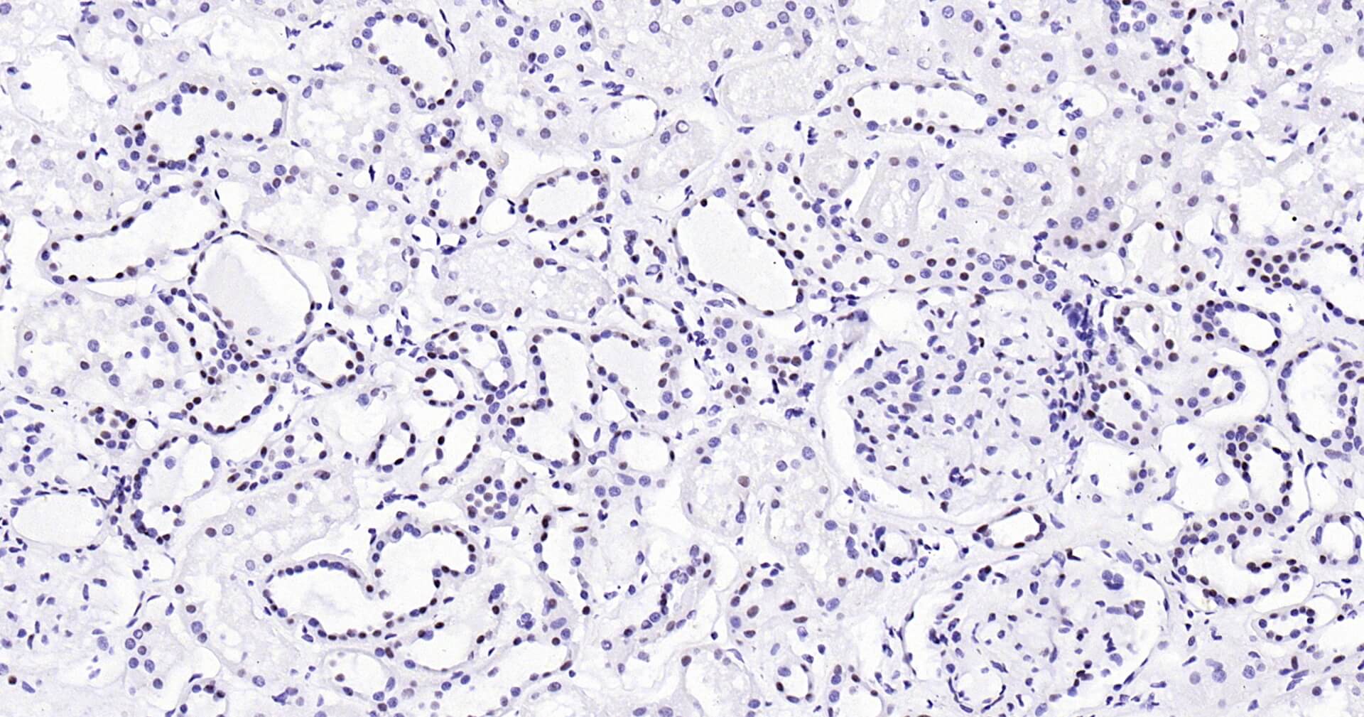 Immunohistochemical analysis of paraffin embedded human kidney tissue slide using IHC0116H (Human HP1 alpha IHC Kit).