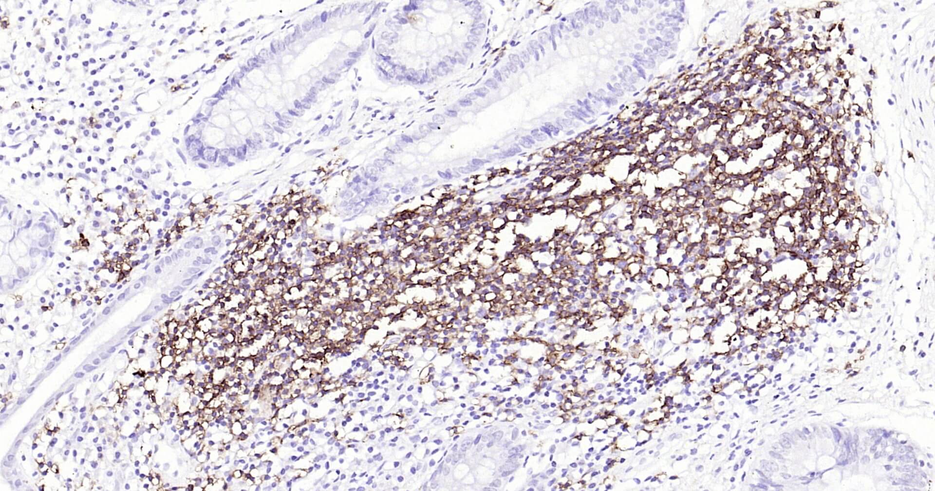 Immunohistochemical analysis of paraffin embedded rat spleen tissue slide using IHC0125 (CD20 IHC Kit).