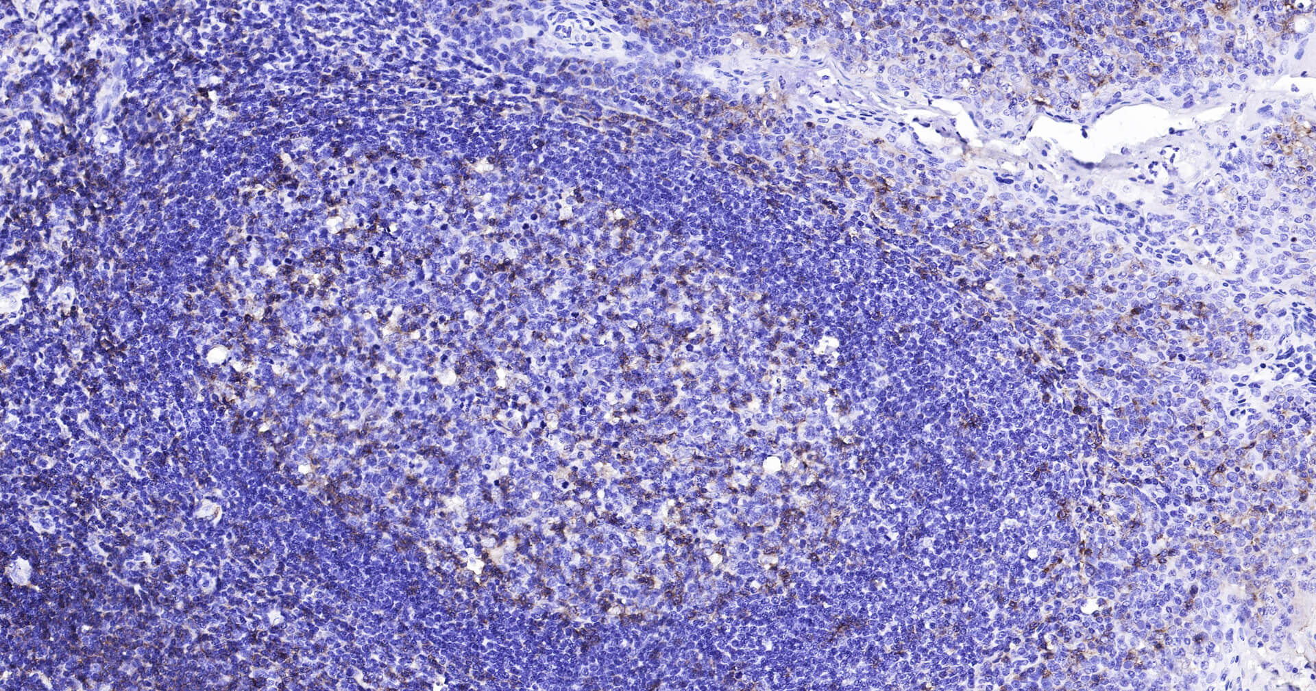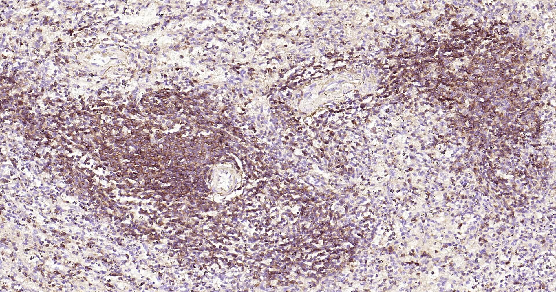 Immunohistochemical analysis of paraffin embedded human tonsil tissue slide using IHC0126H (Human CD4 IHC Kit).