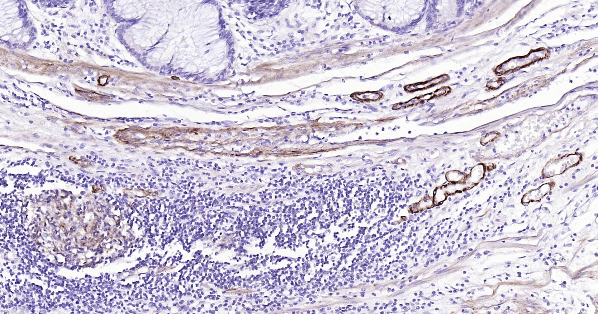 Immunohistochemical analysis of paraffin embedded human colon tissue slide using IHC0151H (Human SMMHC IHC Kit).