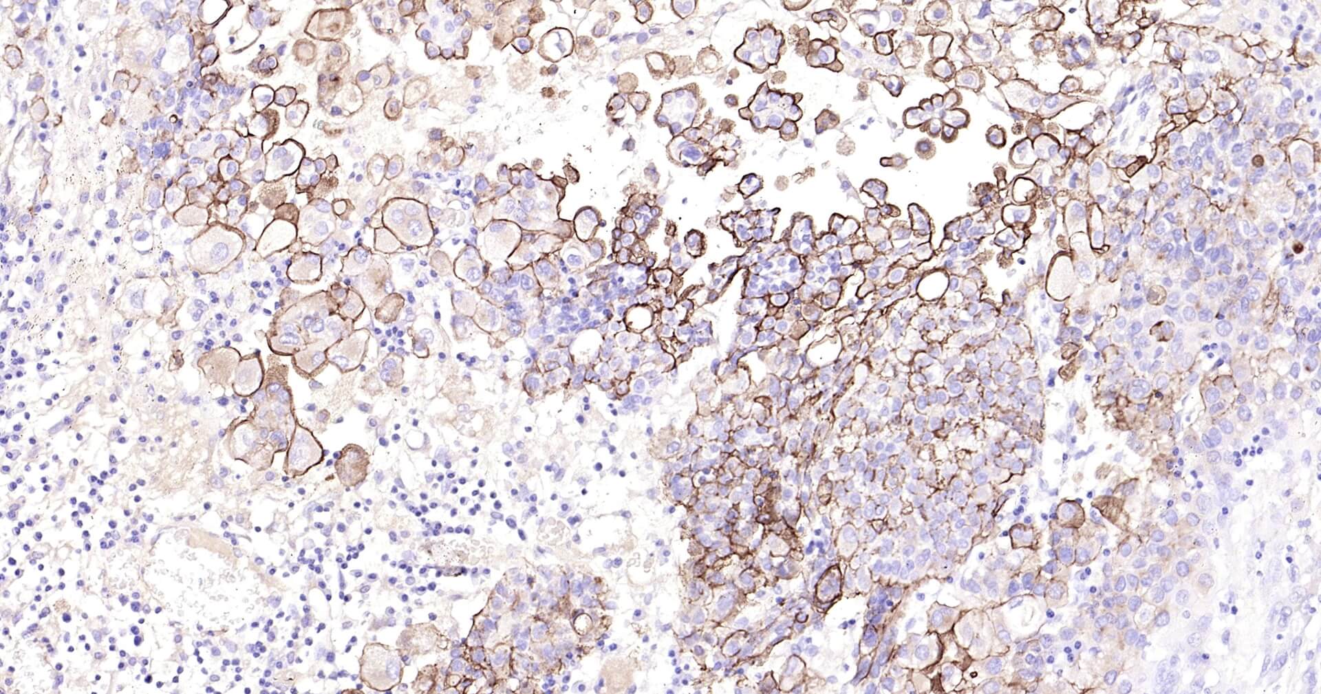 Immunohistochemical analysis of paraffin embedded human mesothelioma tissue slide using IHC0167H (Human MSLN IHC Kit).
