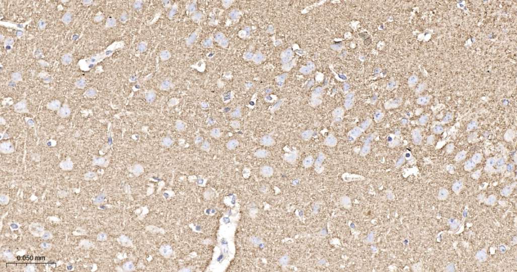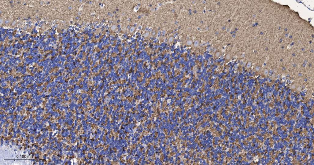 Immunohistochemical analysis of paraffin embedded Mouse cerebellum tissue slide using IHC0173M (Mouse Synaptophysin IHC Kit).