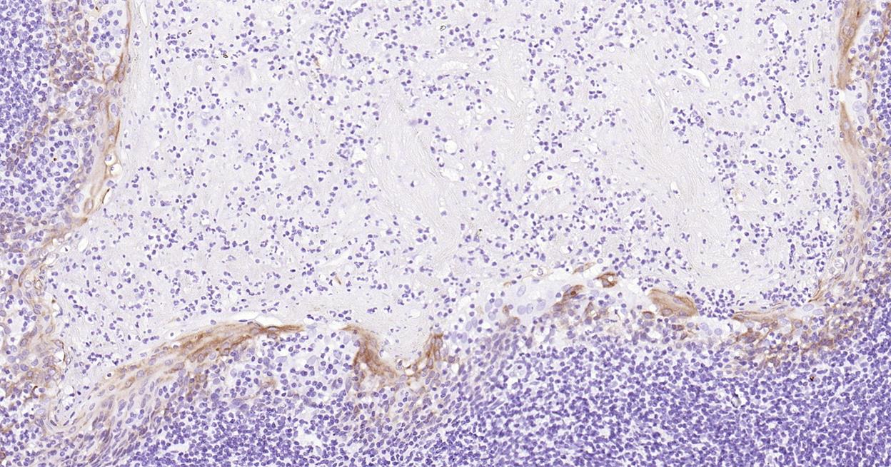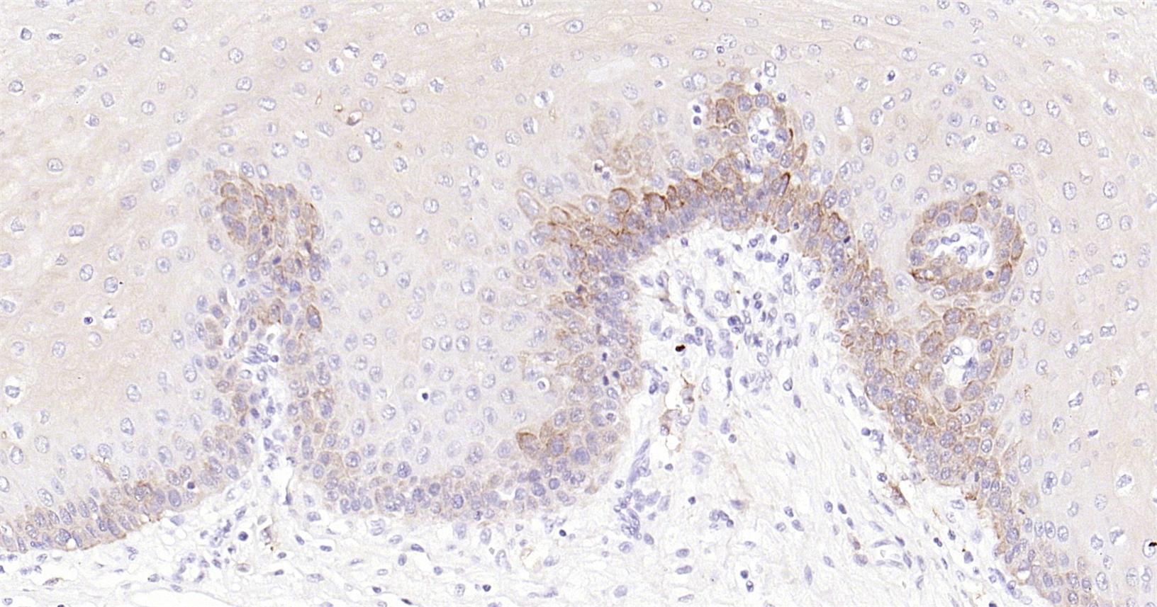 Immunohistochemical analysis of paraffin embedded human esophagus tissue slide using IHC0232H (Human CD1A IHC Kit).