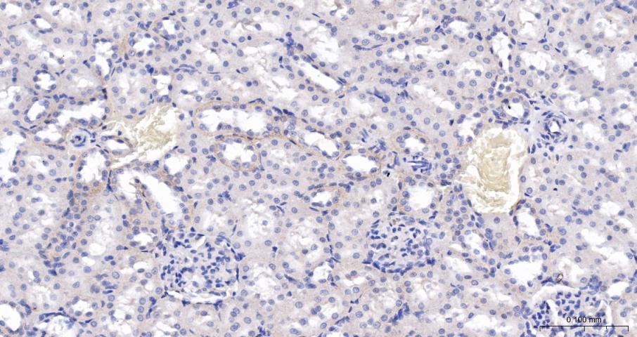 Paraformaldehyde-fixed, paraffin embedded Rat Kidney; Antigen retrieval by boiling in sodium citrate buffer (pH6.0) for 15 min; The section was incubated with OAT-3 Polyclonal Antibody, Unconjugated (bs-42422R) at 1:200 overnight at 4°C, followed by conjugation to the bs-0295G-HRP and DAB (C-0010) staining.