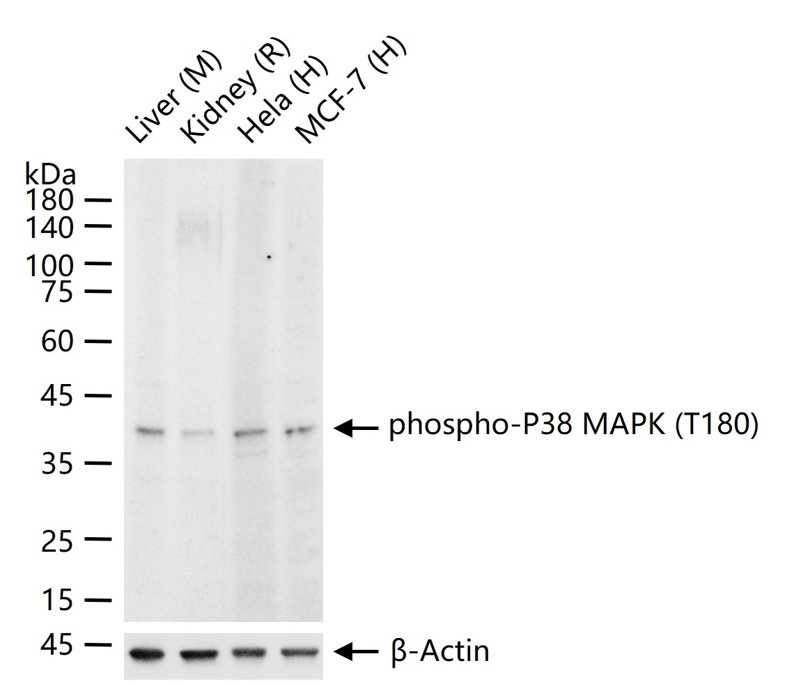 | 英文名称 | phospho-P38 MAPK (T180) Recombinant Rabbit mAb |