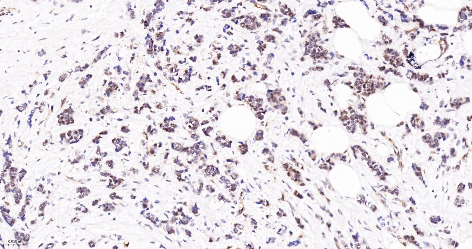 Paraformaldehyde-fixed, paraffin embedded Human Breast Cancer; Antigen retrieval by boiling in sodium citrate buffer (pH6.0) for 15 min; The section was incubated with PMS2 Monoclonal Antibody, Unconjugated (bsm-55559R) at 1:200 overnight at 4°C, followed by conjugation to the bs-0295G-HRP and DAB (C-0010) staining.