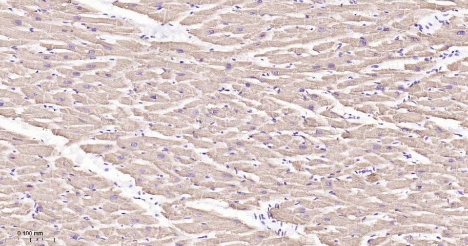 Paraformaldehyde-fixed, paraffin embedded Human Heart; Antigen retrieval by boiling in sodium citrate buffer (pH6.0) for 15 min; The section was incubated with ACADM Monoclonal Antibody, Unconjugated (bsm-63329R ) at 1:200 overnight at 4°C, followed by conjugation to the bs-0295G-HRP and DAB (C-0010) staining.