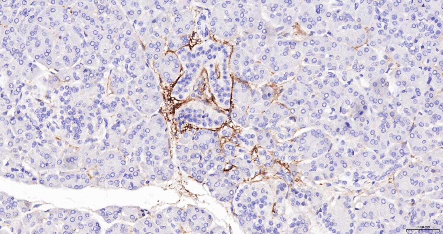 Paraformaldehyde-fixed, paraffin embedded Human Pancreas; Antigen retrieval by boiling in sodium citrate buffer (pH6.0) for 15 min; The section was incubated with NGFR Monoclonal Antibody, Unconjugated (bsm-43637R) at 1:200 overnight at 4°C, followed by conjugation to the bs-0295G-HRP and DAB (C-0010) staining.