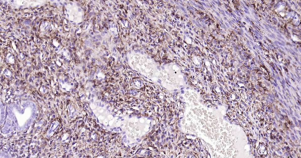 Immunohistochemical analysis of paraffin embedded human uterus tissue slide using IHC0376 (NGFR/p75NTR Kit).