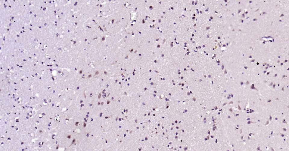 Immunohistochemical analysis of paraffin embedded human brain tissue slide using IHC0377 (TBR1 Kit).