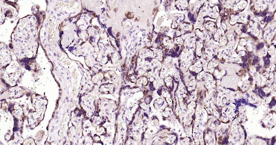 Immunohistochemical analysis of paraffin embedded human placenta tissue slide using IHC0383 (MSI2 Kit).
