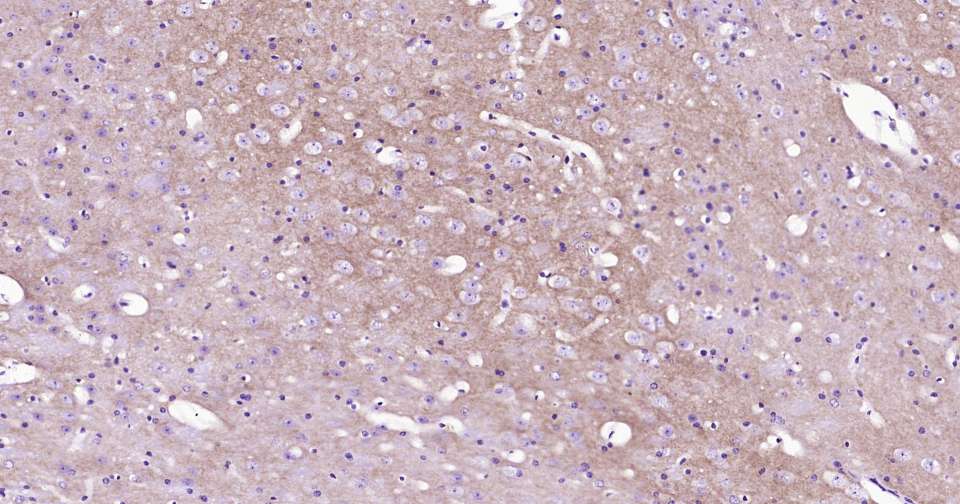 Immunohistochemical analysis of paraffin embedded mouse brain tissue slide using IHC0385 (GABBR2 Kit).