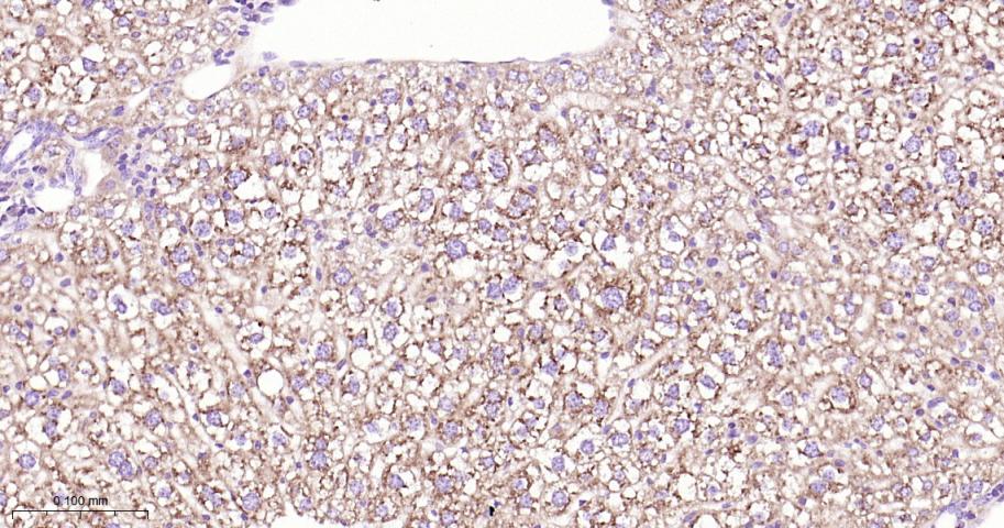 Paraformaldehyde-fixed, paraffin embedded Rat Liver; Antigen retrieval by boiling in sodium citrate buffer (pH6.0) for 15 min; Antibody incubation with AMPK alpha 1 Monoclonal Antibody, Unconjugated(bsm-63119R) at 1:200 overnight at 4°C, followed by conjugation to the bs-0295G-HRP and DAB (C-0010) staining.