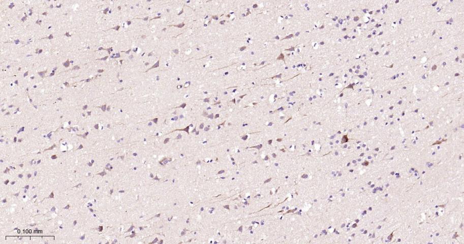 Paraformaldehyde-fixed, paraffin embedded Human Cerebrum; Antigen retrieval by boiling in sodium citrate buffer (pH6.0) for 15 min; Antibody incubation with AMPK alpha 1 Monoclonal Antibody, Unconjugated(bsm-63119R) at 1:200 overnight at 4°C, followed by conjugation to the bs-0295G-HRP and DAB (C-0010) staining.