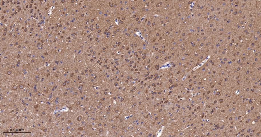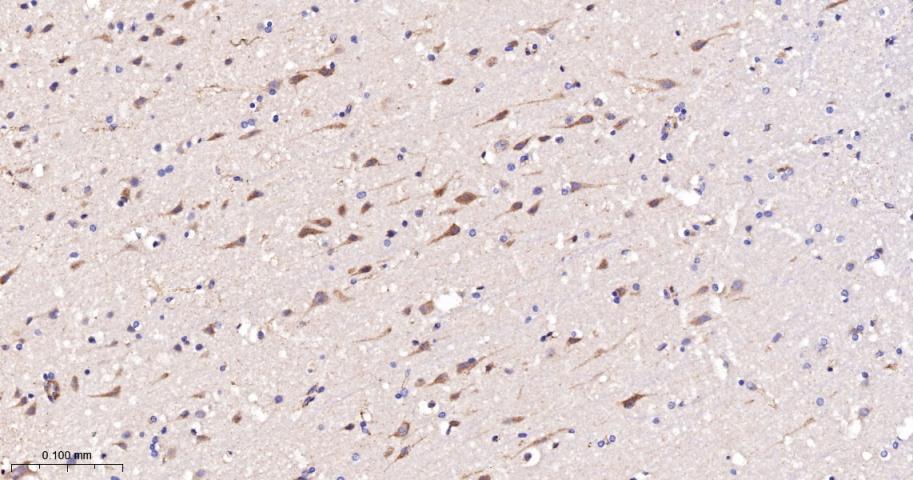 Paraformaldehyde-fixed, paraffin embedded Rat Cerebrum; Antigen retrieval by boiling in sodium citrate buffer (pH6.0) for 15 min; The section was incubated with FAK Monoclonal Antibody, Unconjugated (bsm-63128R) at 1:200 overnight at 4°C, followed by conjugation to the bs-0295G-HRP and DAB (C-0010) staining.