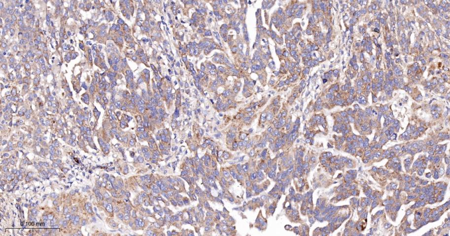 Paraformaldehyde-fixed, paraffin embedded Human Ovarian Cancer; Antigen retrieval by boiling in sodium citrate buffer (pH6.0) for 15 min; The section was incubated with FAK Monoclonal Antibody, Unconjugated (bsm-63128R) at 1:200 overnight at 4°C, followed by conjugation to the bs-0295G-HRP and DAB (C-0010) staining.