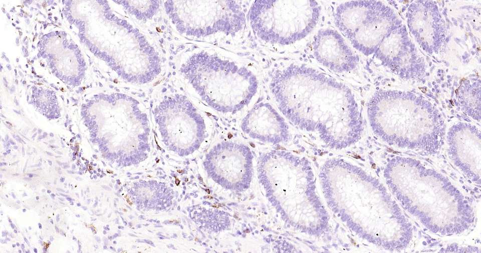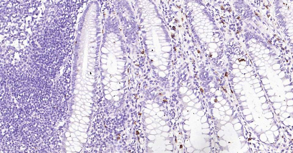 Immunohistochemical analysis of paraffin embedded human colon tissue slide using IHC0304H (Human c-Kit Kit).