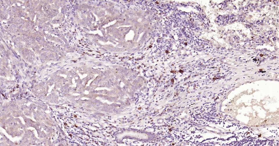 Immunohistochemical analysis of paraffin embedded human colon cancer tissue slide using IHC0304H (Human c-Kit Kit).