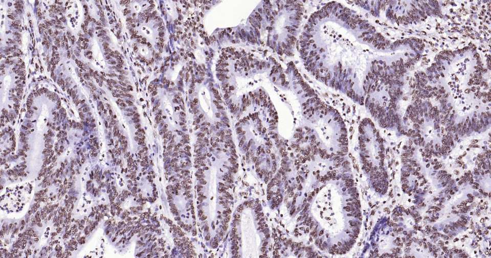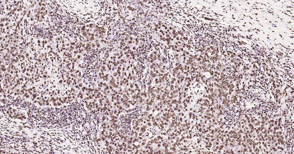 Immunohistochemical analysis of paraffin embedded human breast cancer tissue slide using IHC0308H (Human Histone H2A.X Kit).