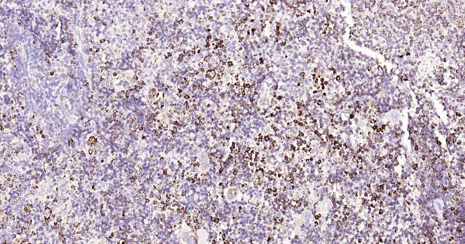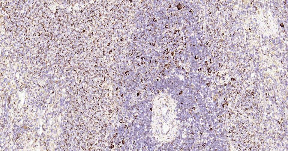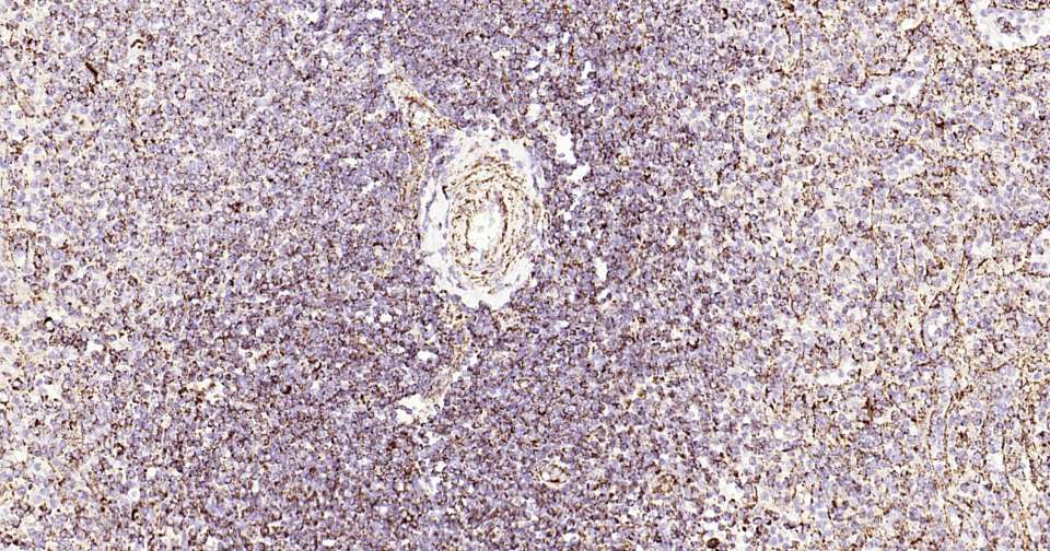 Immunohistochemical analysis of paraffin embedded human spleen tissue slide using IHC0317 (HSP60 Kit).