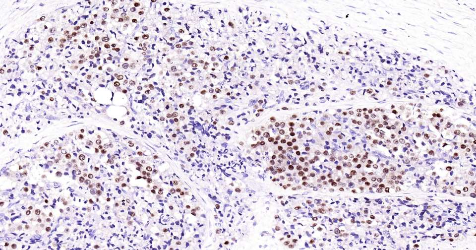 Immunohistochemical analysis of paraffin embedded human prostate tumor tissue slide using IHC0327 (Androgen receptor Kit).