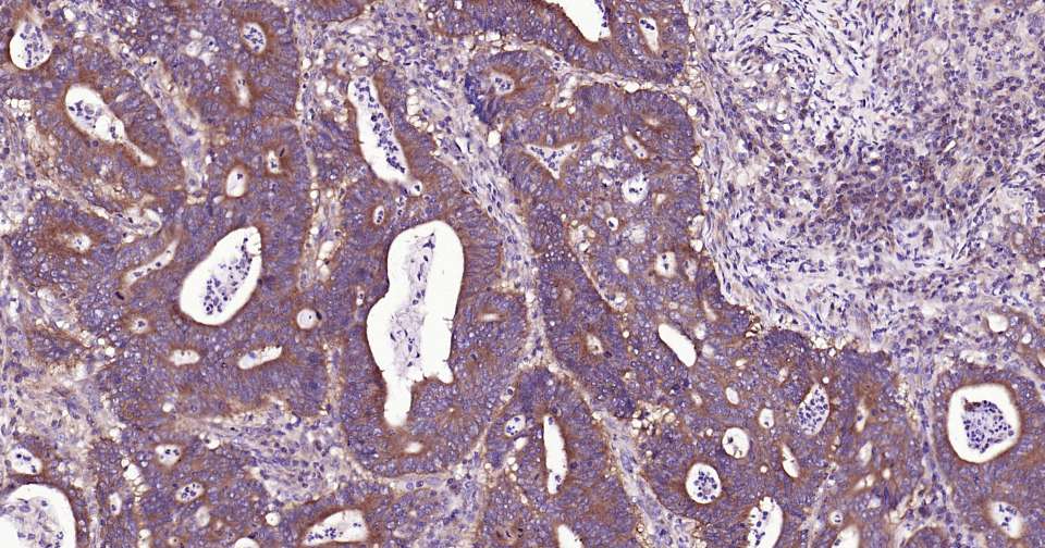 Immunohistochemical analysis of paraffin embedded human colon cancer tissue slide using IHC0341 (Hsp90 alpha Kit).