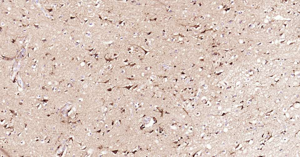 Immunohistochemical analysis of paraffin embedded human brain tissue slide using IHC0343H (Human Osteopontin Kit).