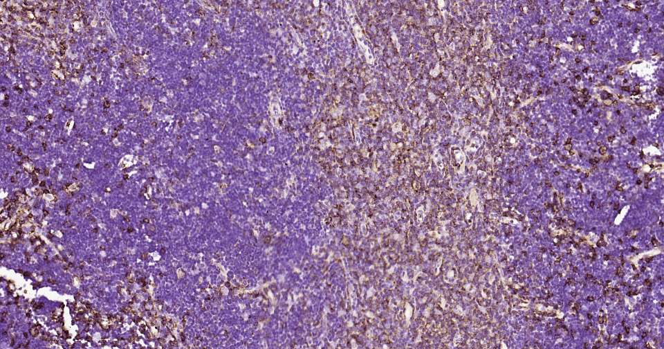Immunohistochemical analysis of paraffin embedded mouse thymus tissue slide using IHC0353M (Human CD44 Kit).