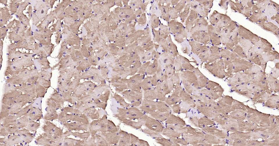 Immunohistochemical analysis of paraffin embedded mouse heart tissue slide using IHC0365M (Mouse Myoglobin Kit).