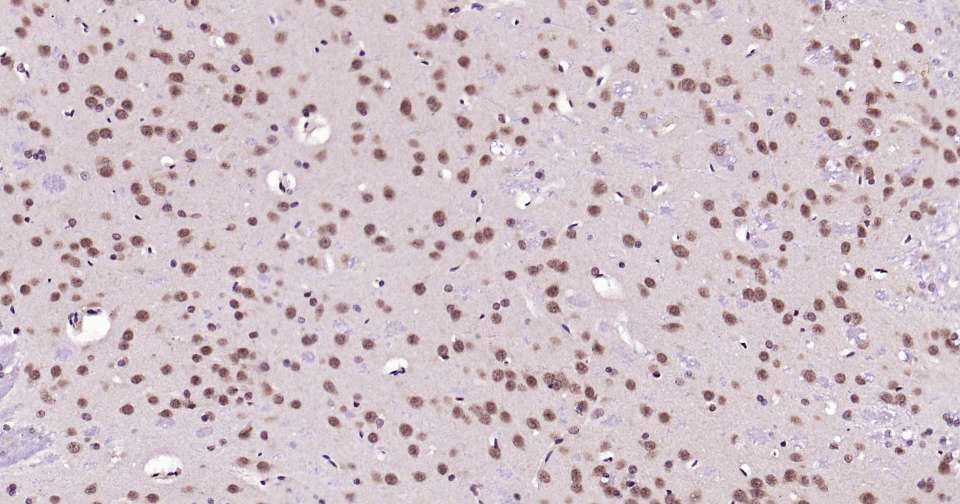 Immunohistochemical analysis of paraffin embedded human brain tissue slide using IHC0368 (HES5 Kit).