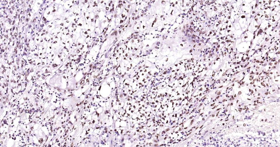 Immunohistochemical analysis of paraffin embedded human endometrial carcinoma tissue slide using IHC0368H (Human HES5 Kit).