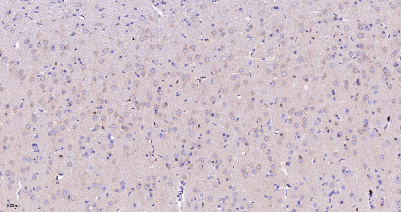 Paraformaldehyde-fixed, paraffin embedded Rat Cerebrum; Antigen retrieval by boiling in sodium citrate buffer (pH6.0) for 15 min; The section was incubated with ARP3 Monoclonal Antibody, Unconjugated (bsm-54337R) at 1:100 overnight at 4°C, followed by conjugation to the bs-0295G-HRP and DAB (C-0010) staining.