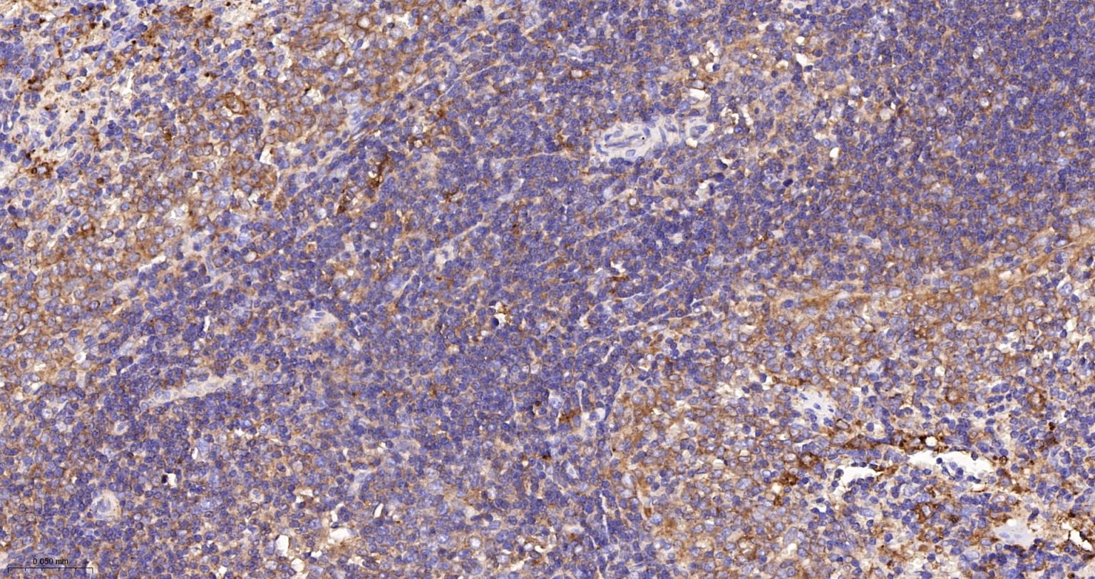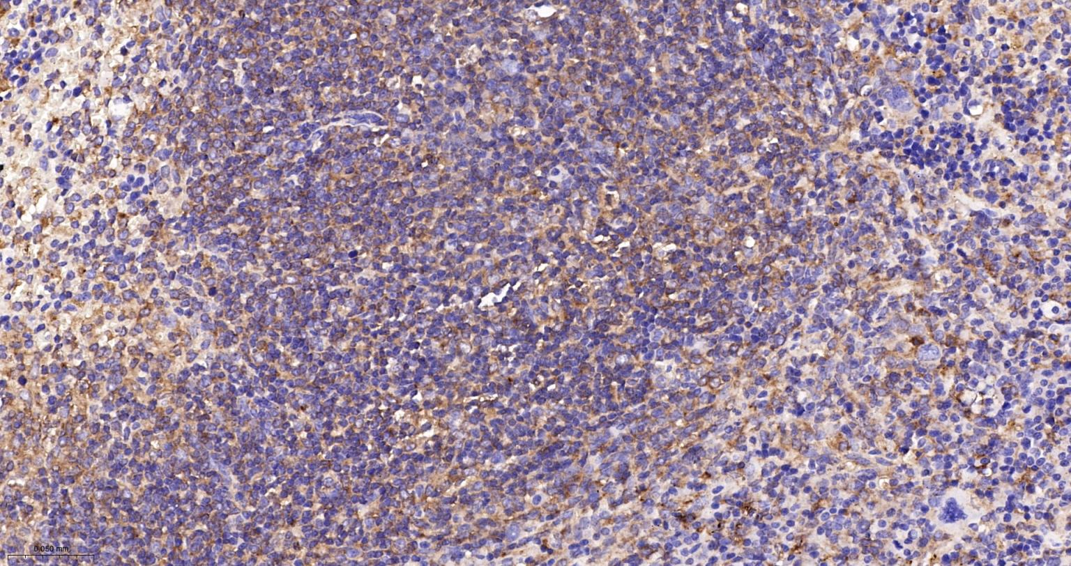 Paraformaldehyde-fixed, paraffin embedded Rat Spleen; Antigen retrieval by boiling in sodium citrate buffer (pH6.0) for 15 min; The section was incubated with ARP3 Monoclonal Antibody, Unconjugated (bsm-54337R) at 1:100 overnight at 4°C, followed by conjugation to the bs-0295G-HRP and DAB (C-0010) staining.