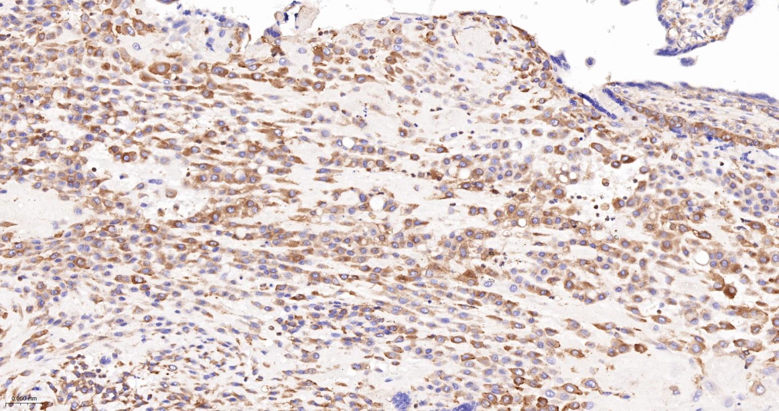 Paraformaldehyde-fixed, paraffin embedded Human placenta; Antigen retrieval by boiling in sodium citrate buffer (pH6.0) for 15 min; The section was incubated with ARP3 Monoclonal Antibody, Unconjugated (bsm-54337R) at 1:100 overnight at 4°C, followed by conjugation to the bs-0295G-HRP and DAB (C-0010) staining.