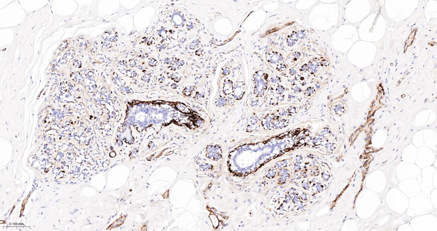 Paraformaldehyde-fixed, paraffin embedded Human Breast Cancer; Antigen retrieval by boiling in sodium citrate buffer (pH6.0) for 15 min; The section was incubated with CD105 Polyclonal Antibody, Unconjugated (bs-34063R) at 1:200 overnight at 4°C, followed by conjugation to the bs-0295G-HRP and DAB (C-0010) staining.