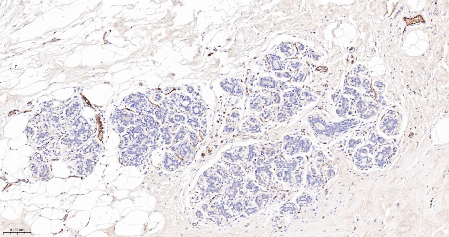 Paraformaldehyde-fixed, paraffin embedded Human Breast Cancer; Antigen retrieval by boiling in sodium citrate buffer (pH6.0) for 15 min; Antibody incubation with VWF Monoclonal Antibody, Unconjugated(bsm-52775R) at 1:1000 overnight at 4°C, followed by conjugation to the bs-0295G-HRP and DAB (C-0010) staining.