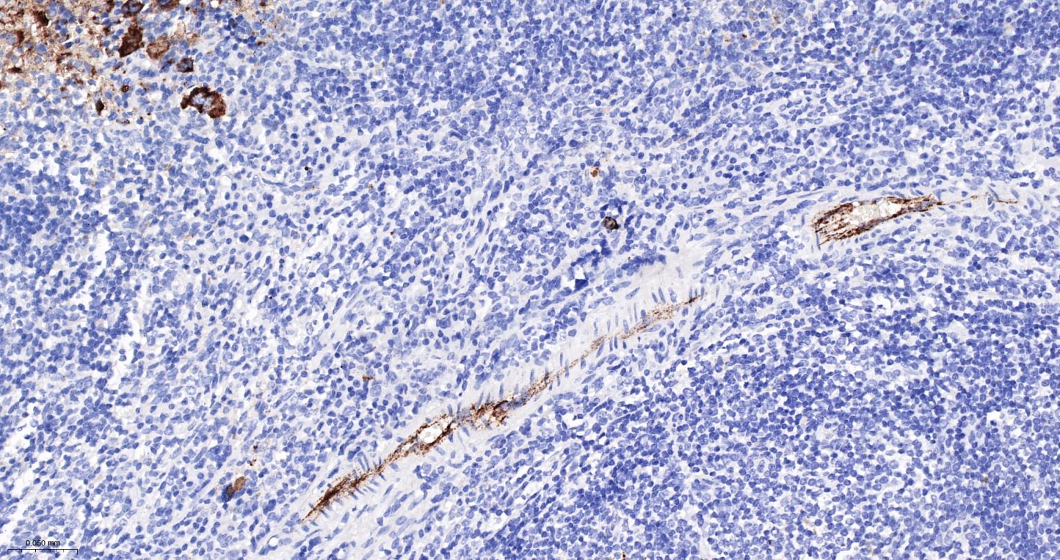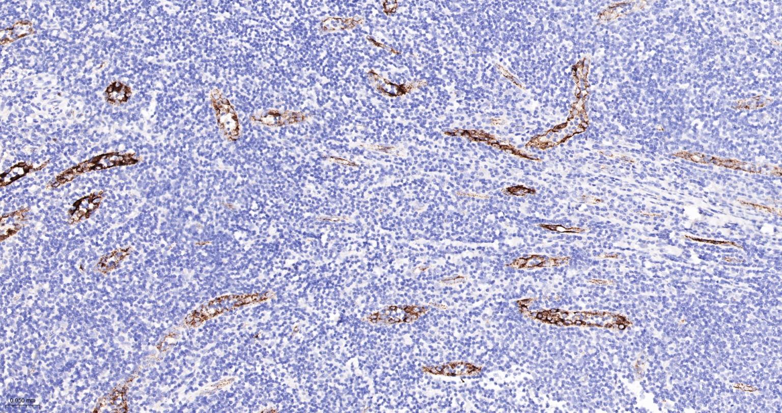 Paraformaldehyde-fixed, paraffin embedded Human Tonsil; Antigen retrieval by boiling in sodium citrate buffer (pH6.0) for 15 min; Antibody incubation with VWF Monoclonal Antibody, Unconjugated(bsm-52775R) at 1:1000 overnight at 4°C, followed by conjugation to the bs-0295G-HRP and DAB (C-0010) staining.
