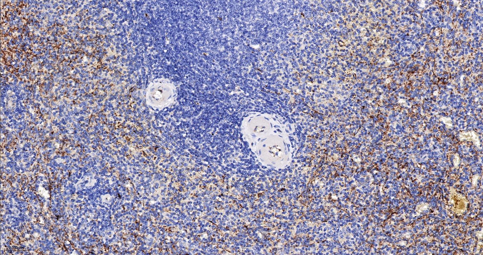 Paraformaldehyde-fixed, paraffin embedded Mouse Spleen; Antigen retrieval by boiling in sodium citrate buffer (pH6.0) for 15 min; The section was incubated with VWF Monoclonal Antibody, Unconjugated (bsm-52775R) at 1:1000 overnight at 4°C, followed by conjugation to the bs-0295G-HRP and DAB (C-0010) staining.
